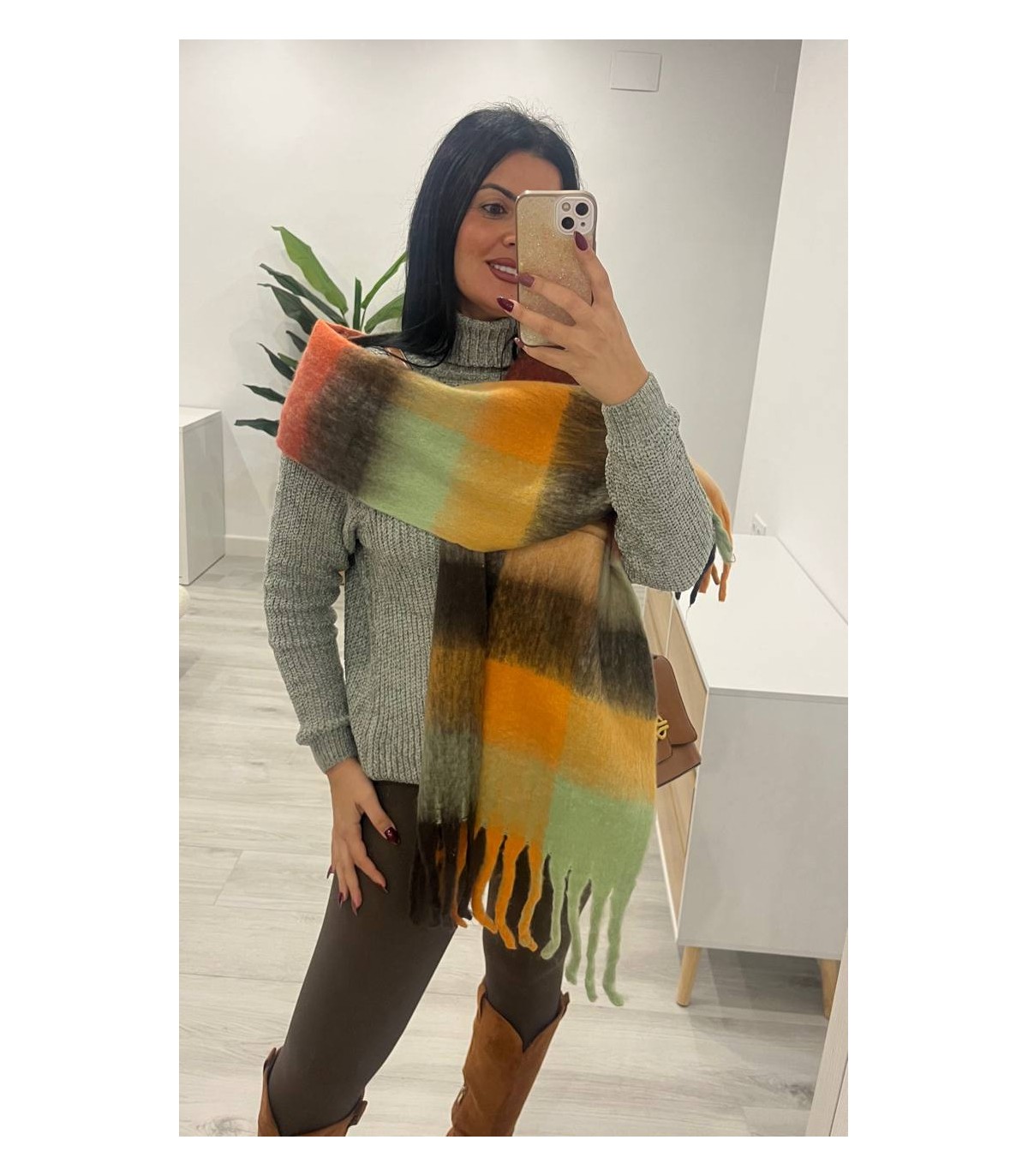 Pasmina cuadros mostaza