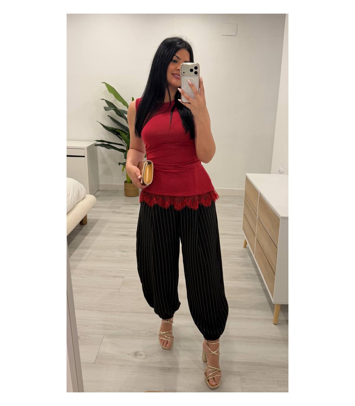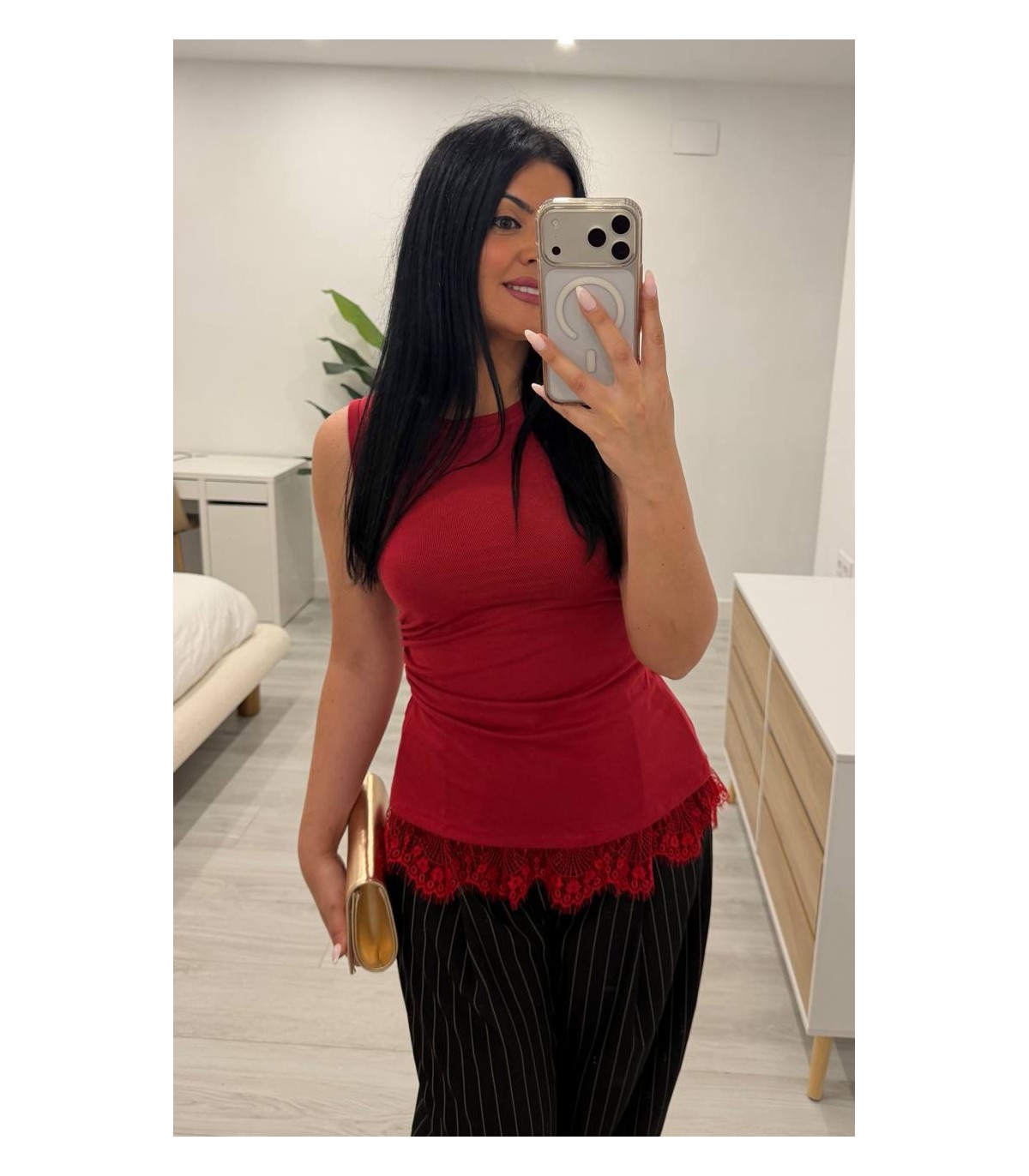 Camiseta algodón encaje roja