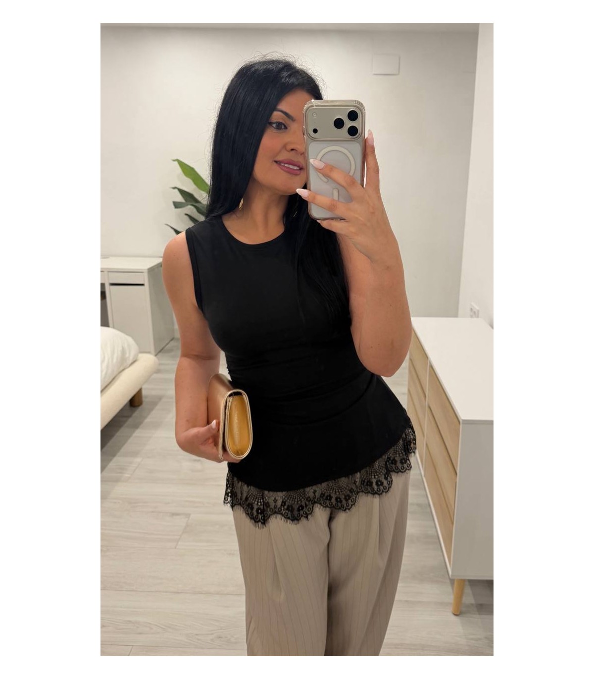 Camiseta algodón encaje negra