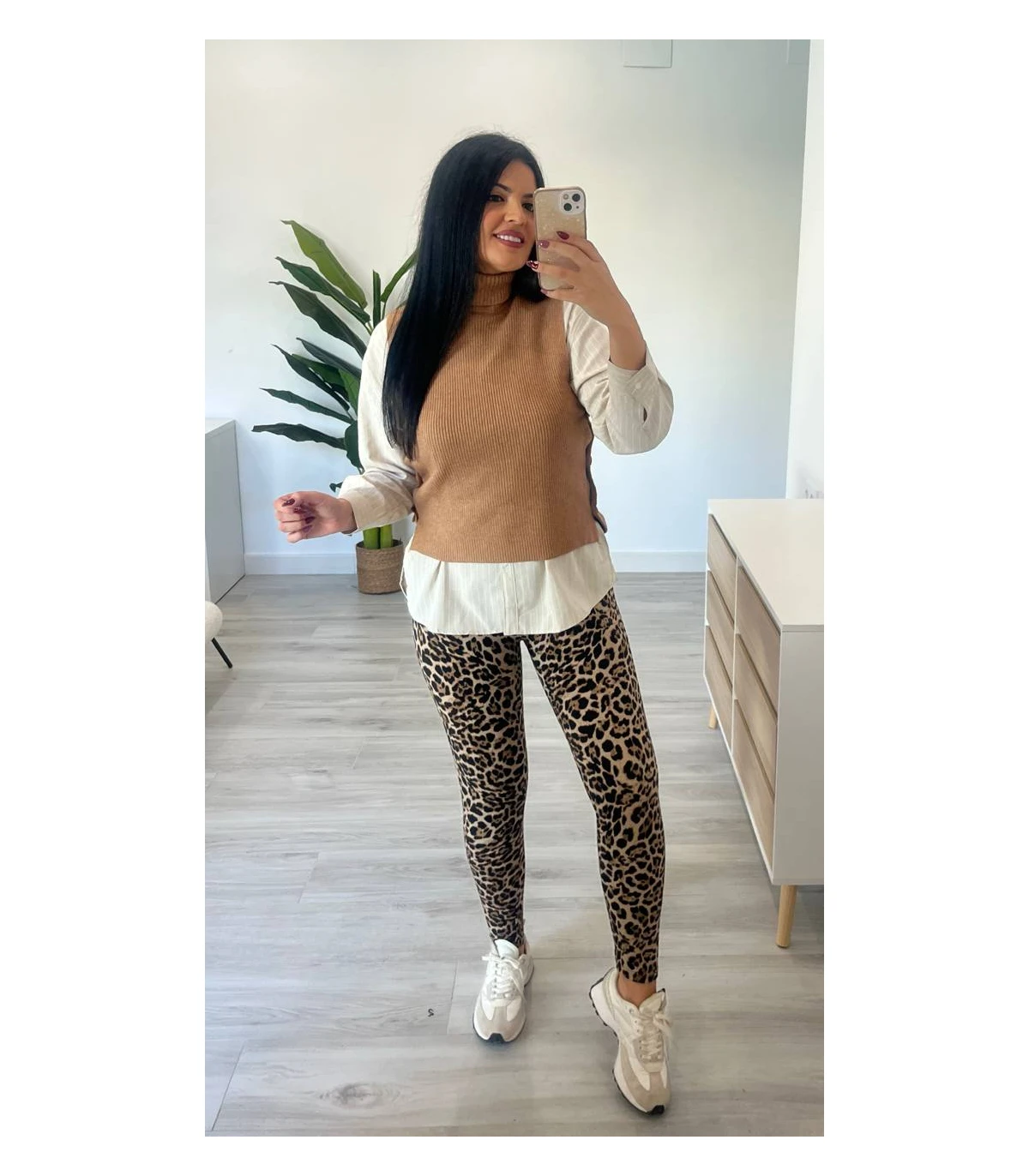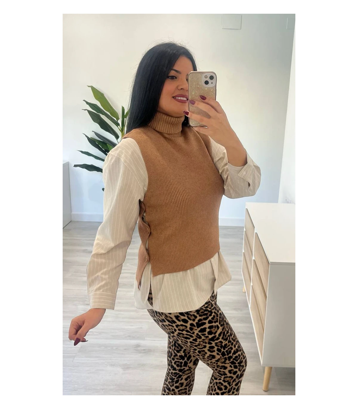 Chaleco punto botones camel
