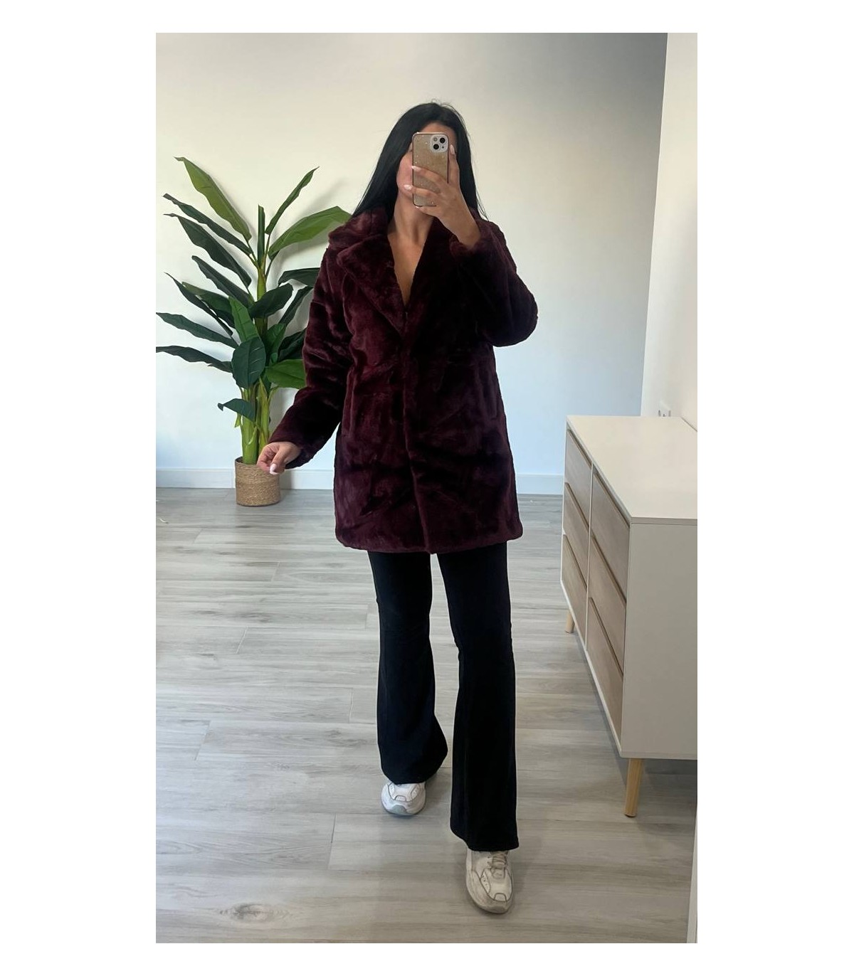 Abrigo pelo luxury burdeos