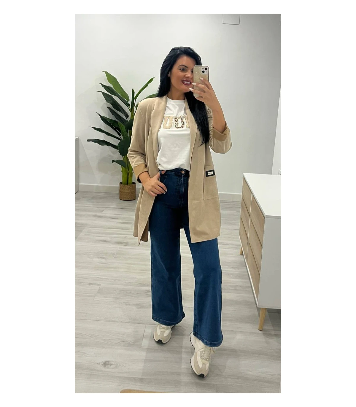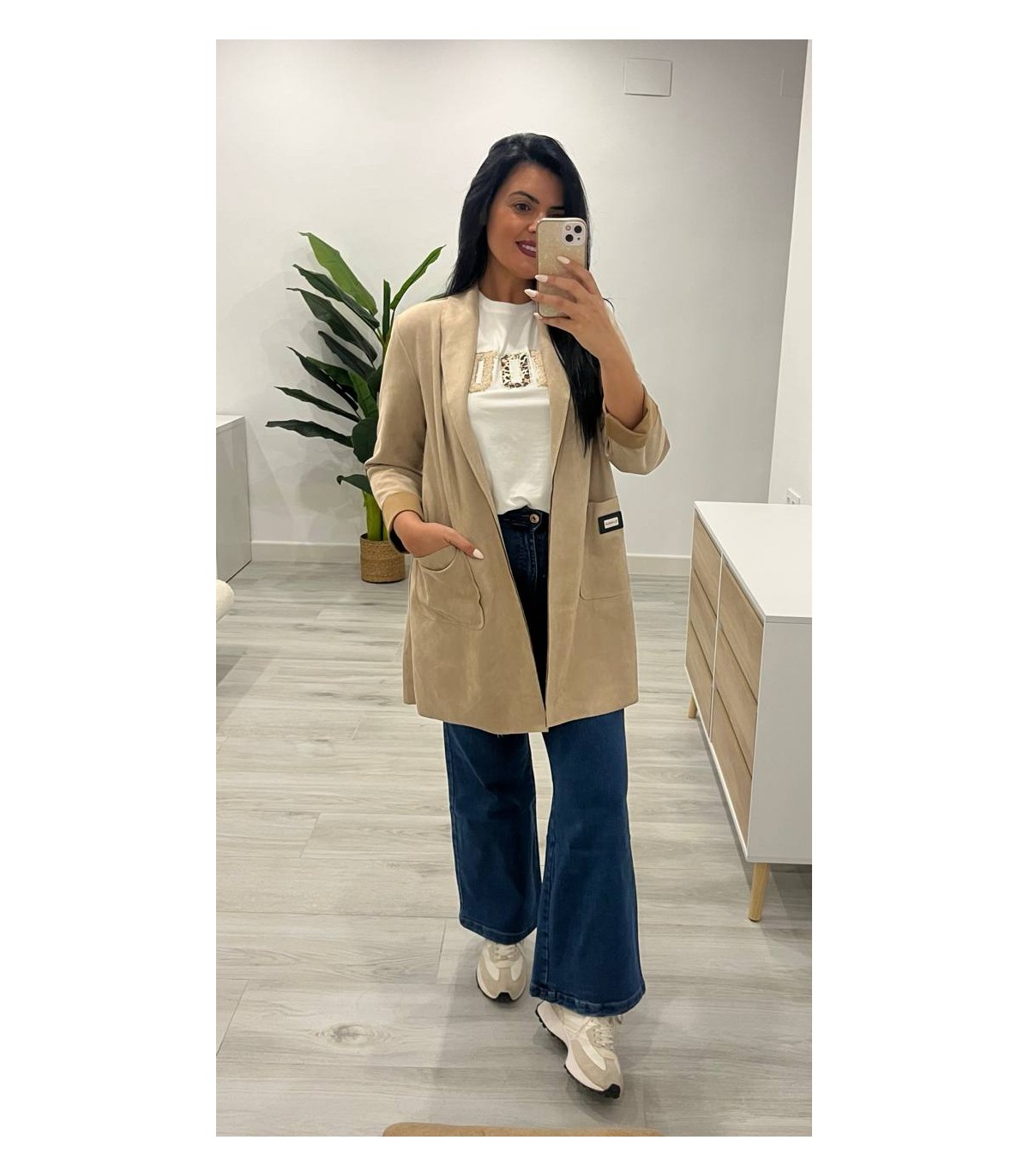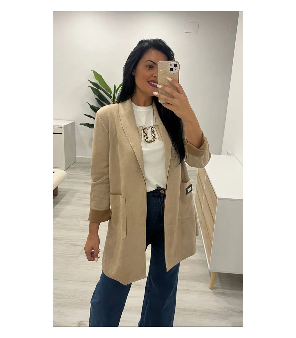 Chaqueta blazer larga piel de antelina talla única 34/44 aprox