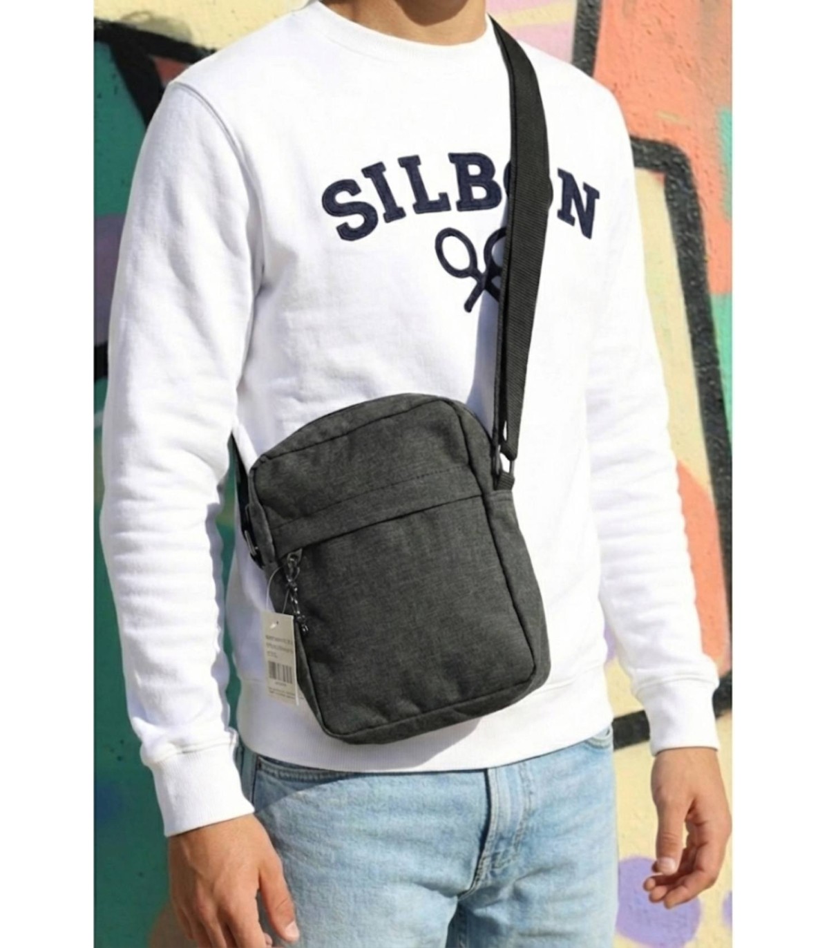 Bandolera gris cremallera oculta