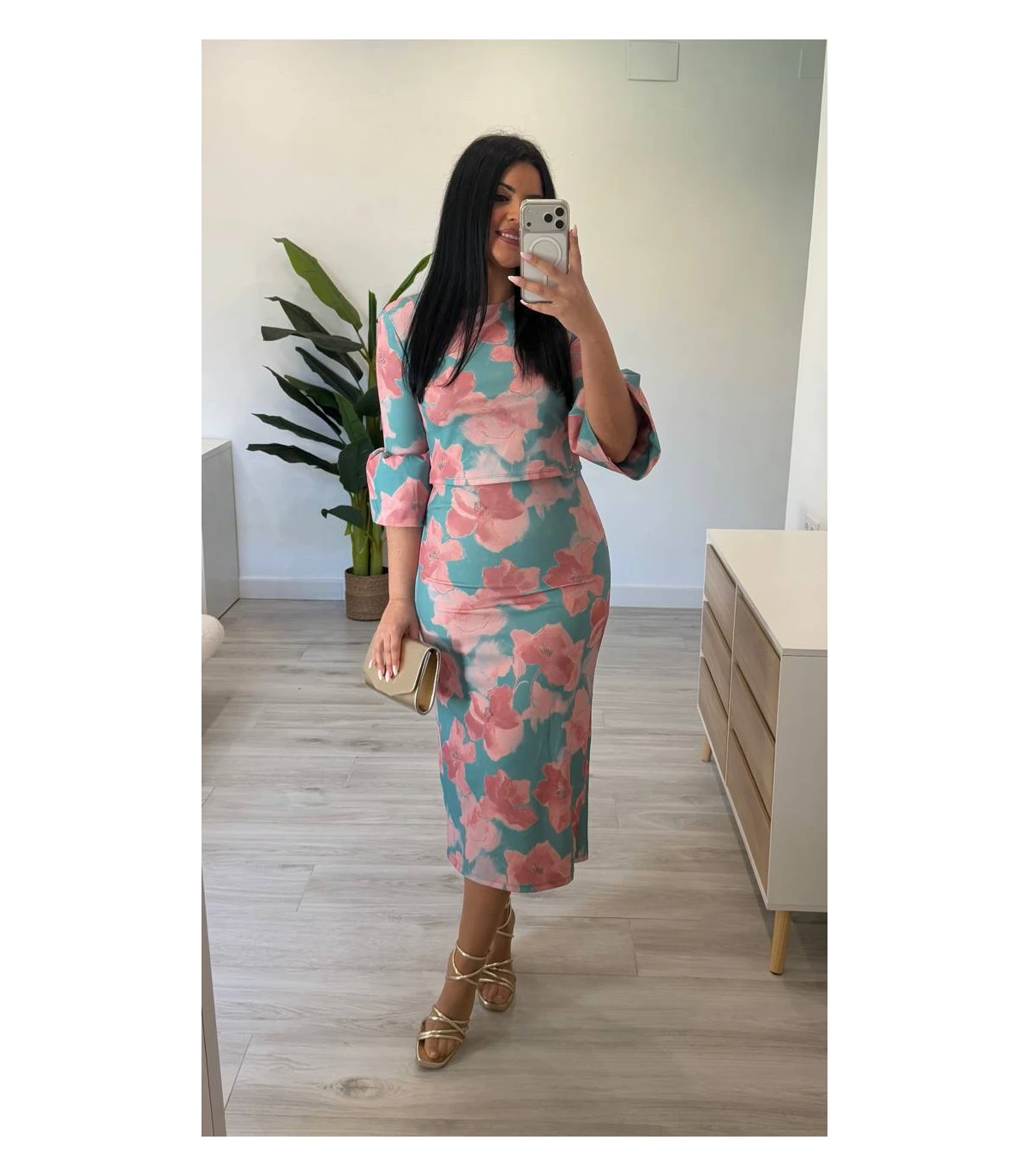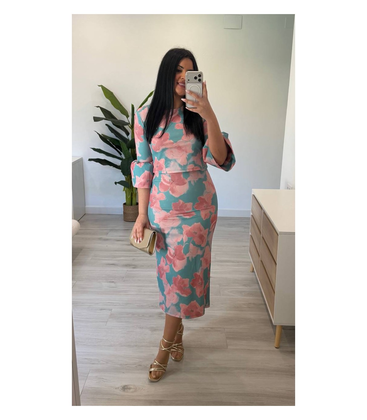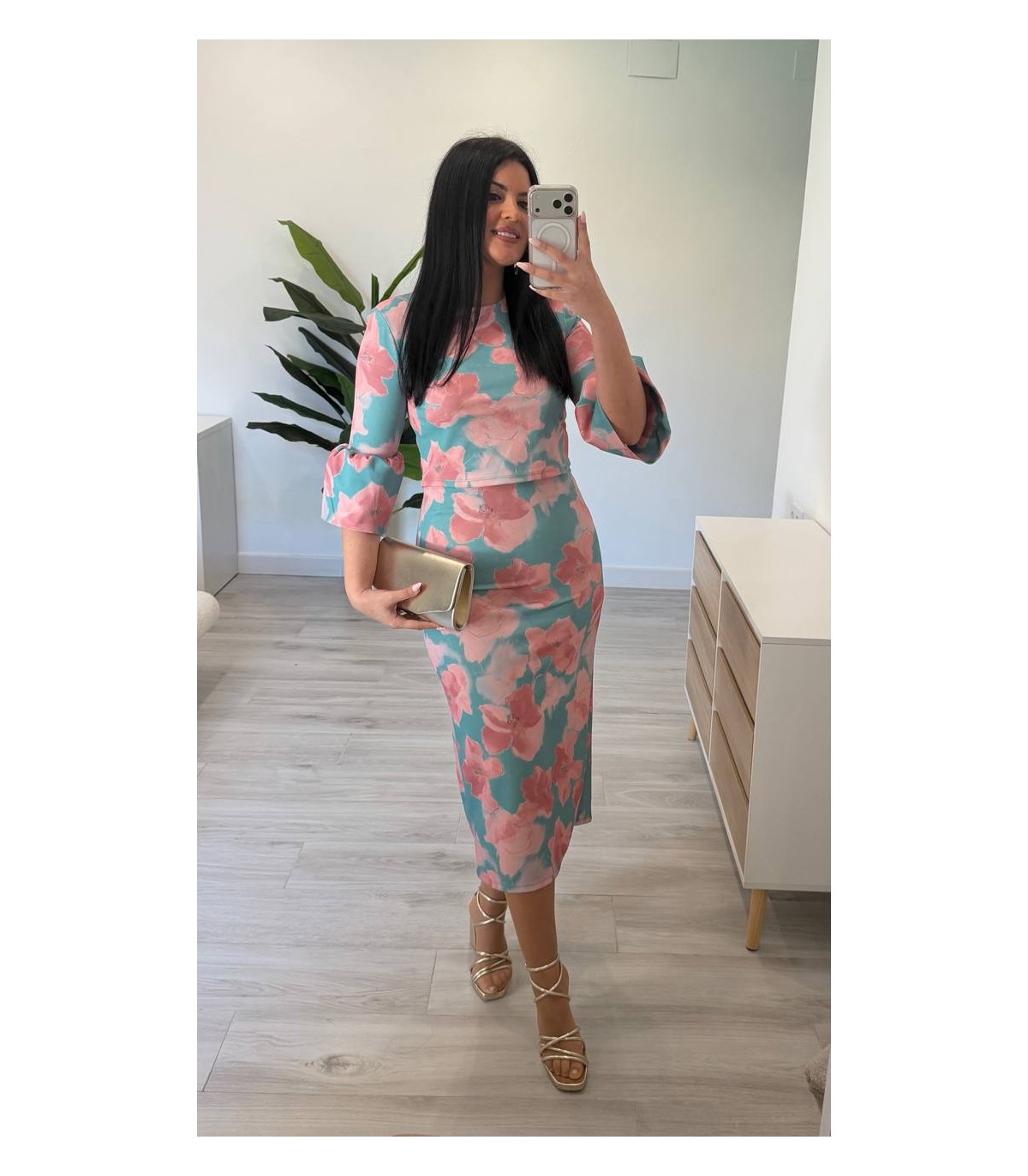 Es un dos piezas de blusa larga y falda. Talla única hasta 42/44 aproximadamente