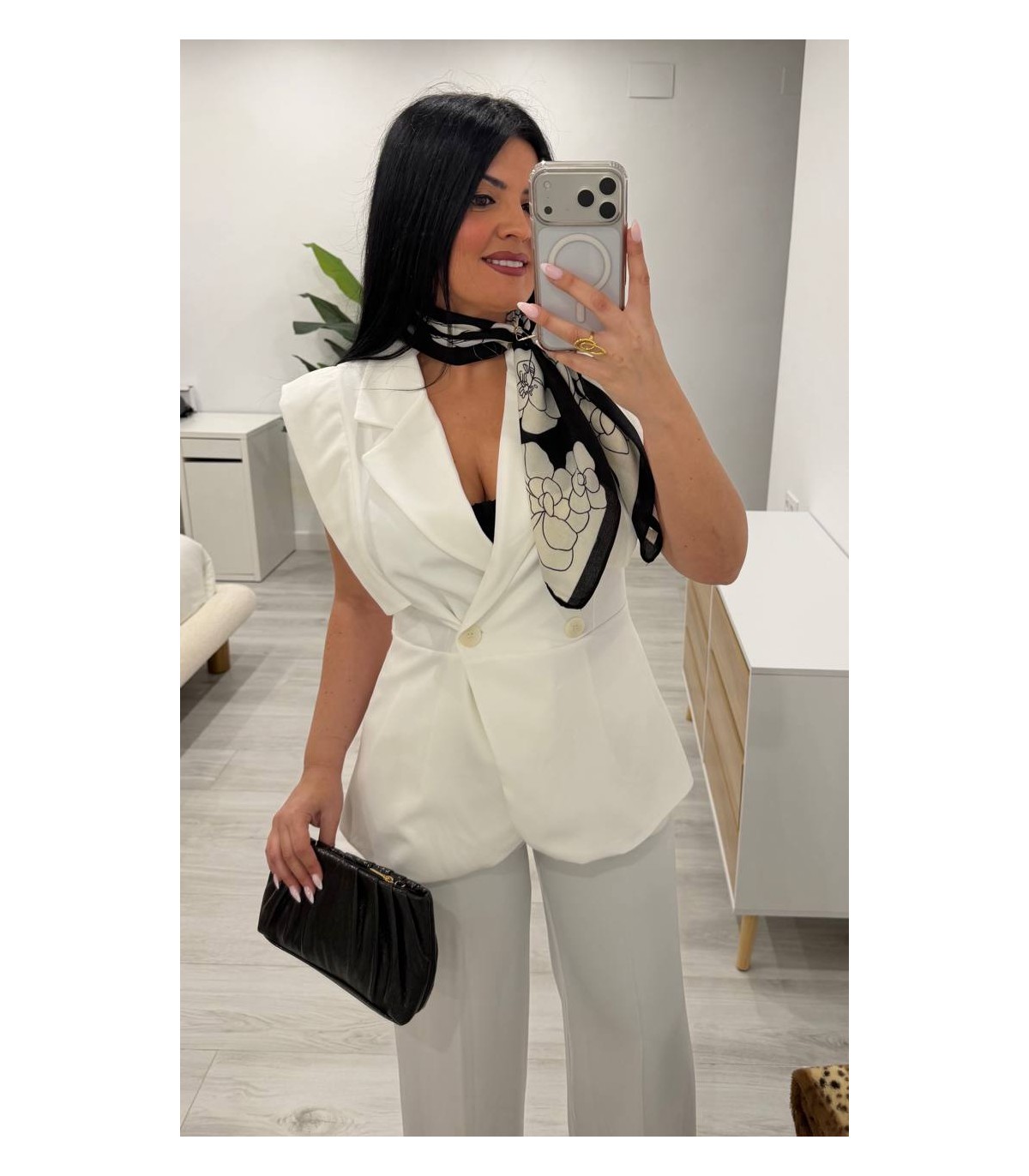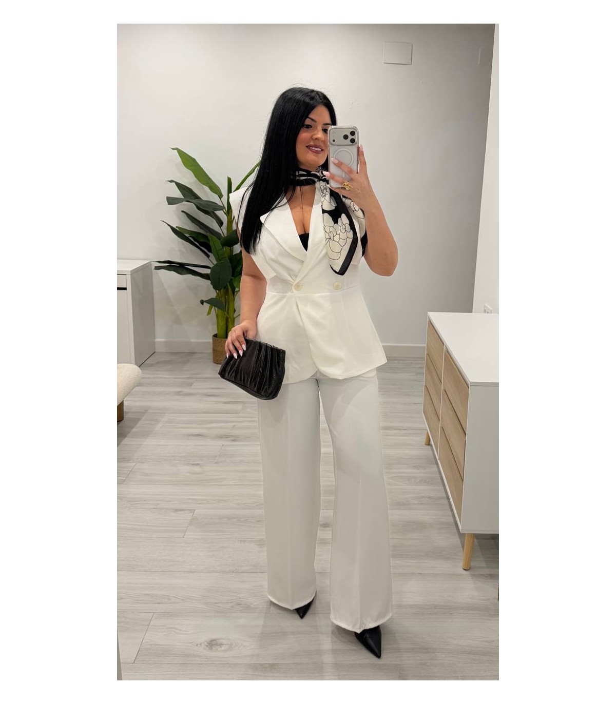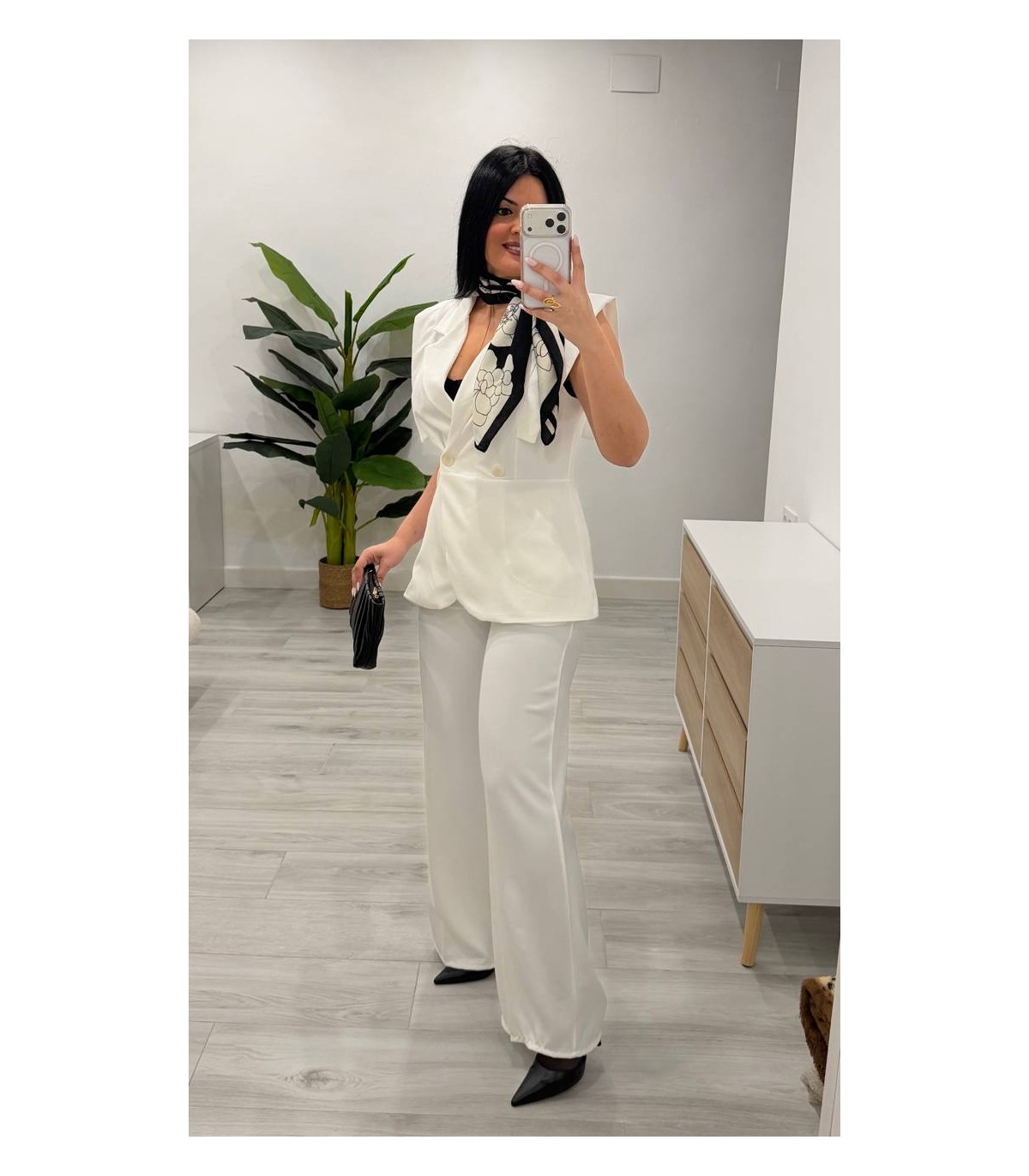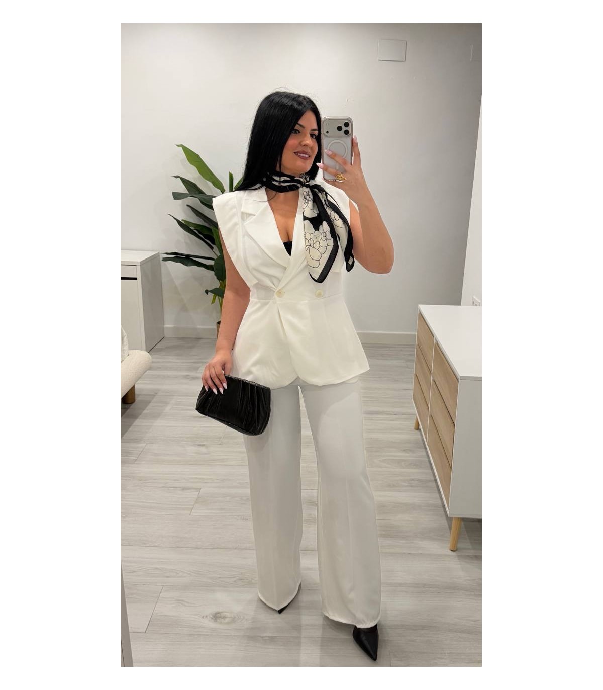 Conjunto chaqueta sin mangas y pantalón blanco