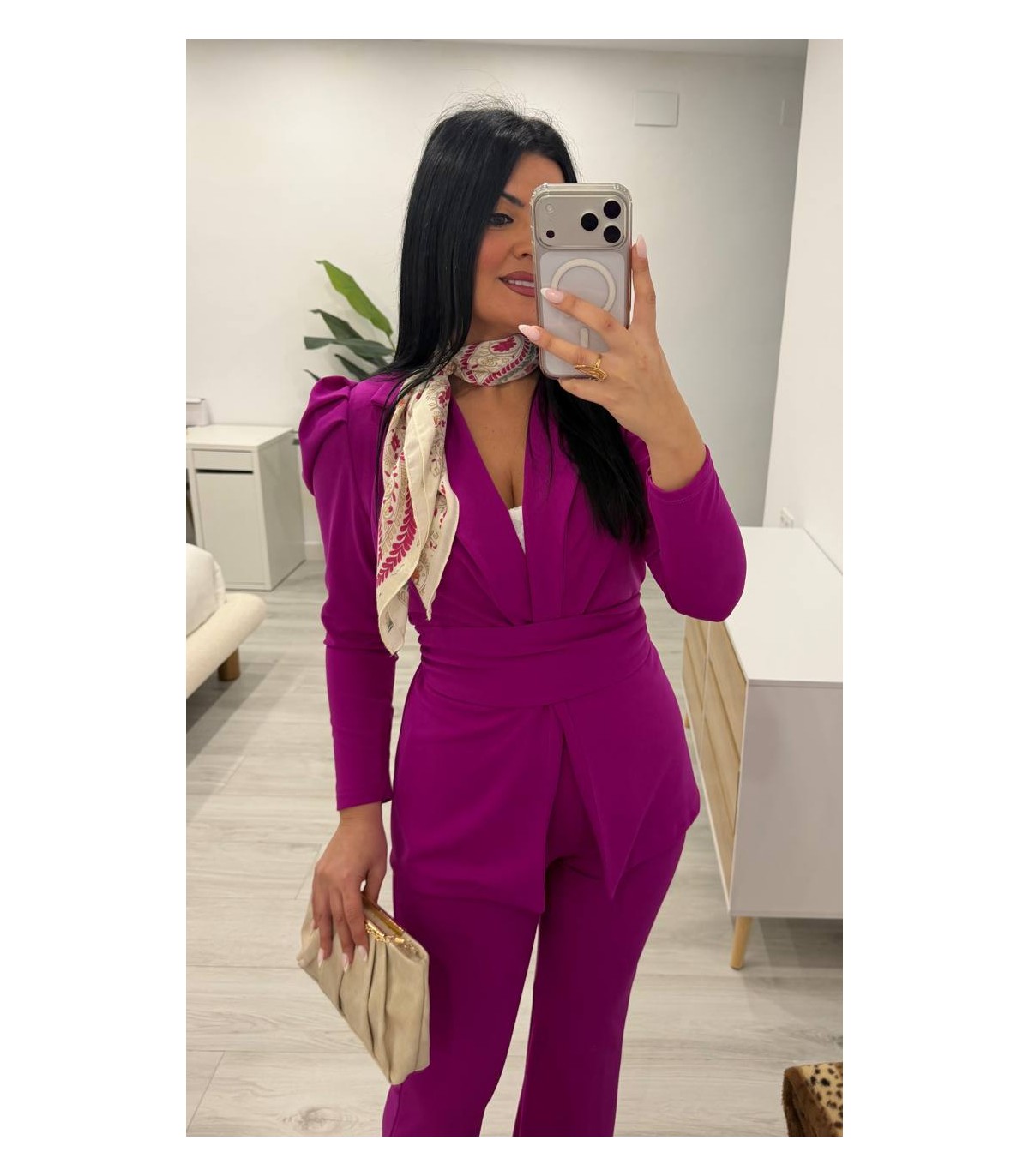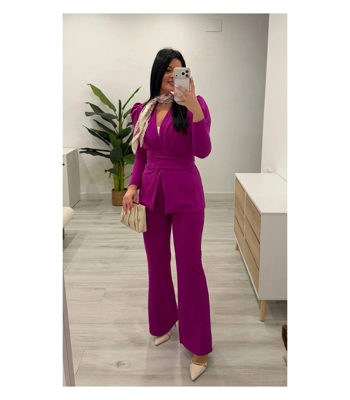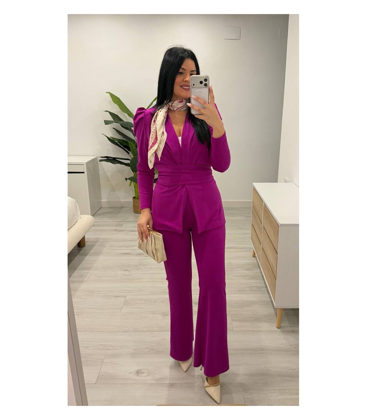 Traje chaqueta con cinturón buganvilla fuerte