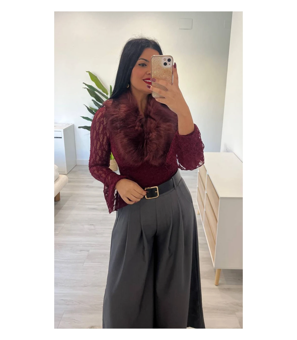 Cuello pelo burdeos