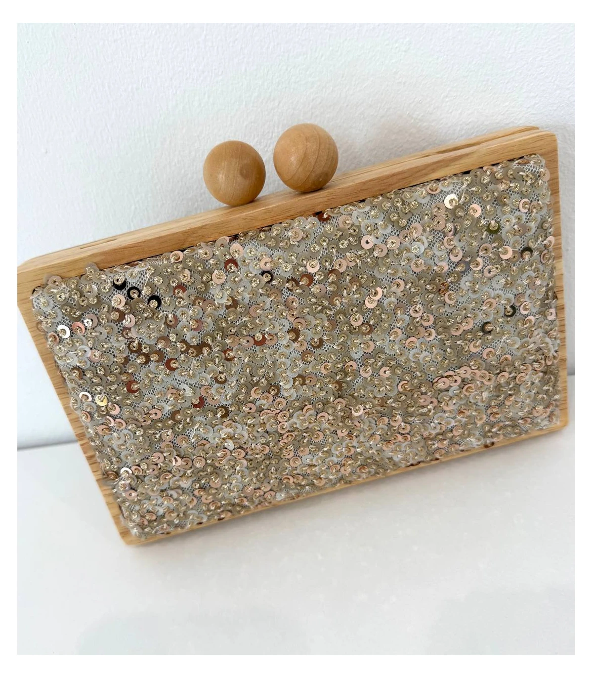 Bolso madera brillos