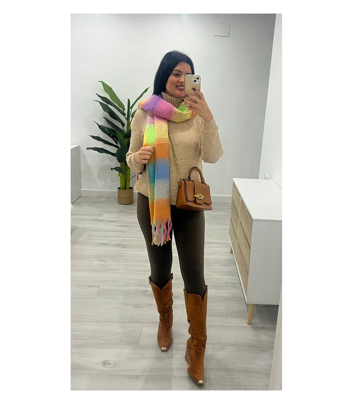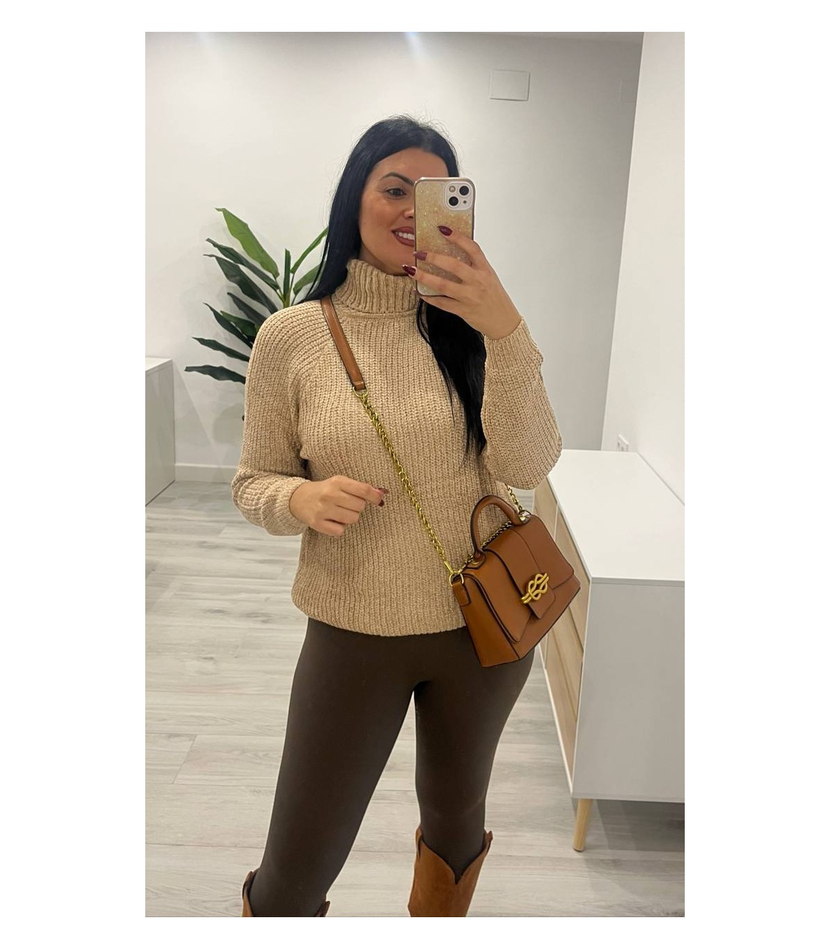 Jersey chenilla cuello vuelto camel