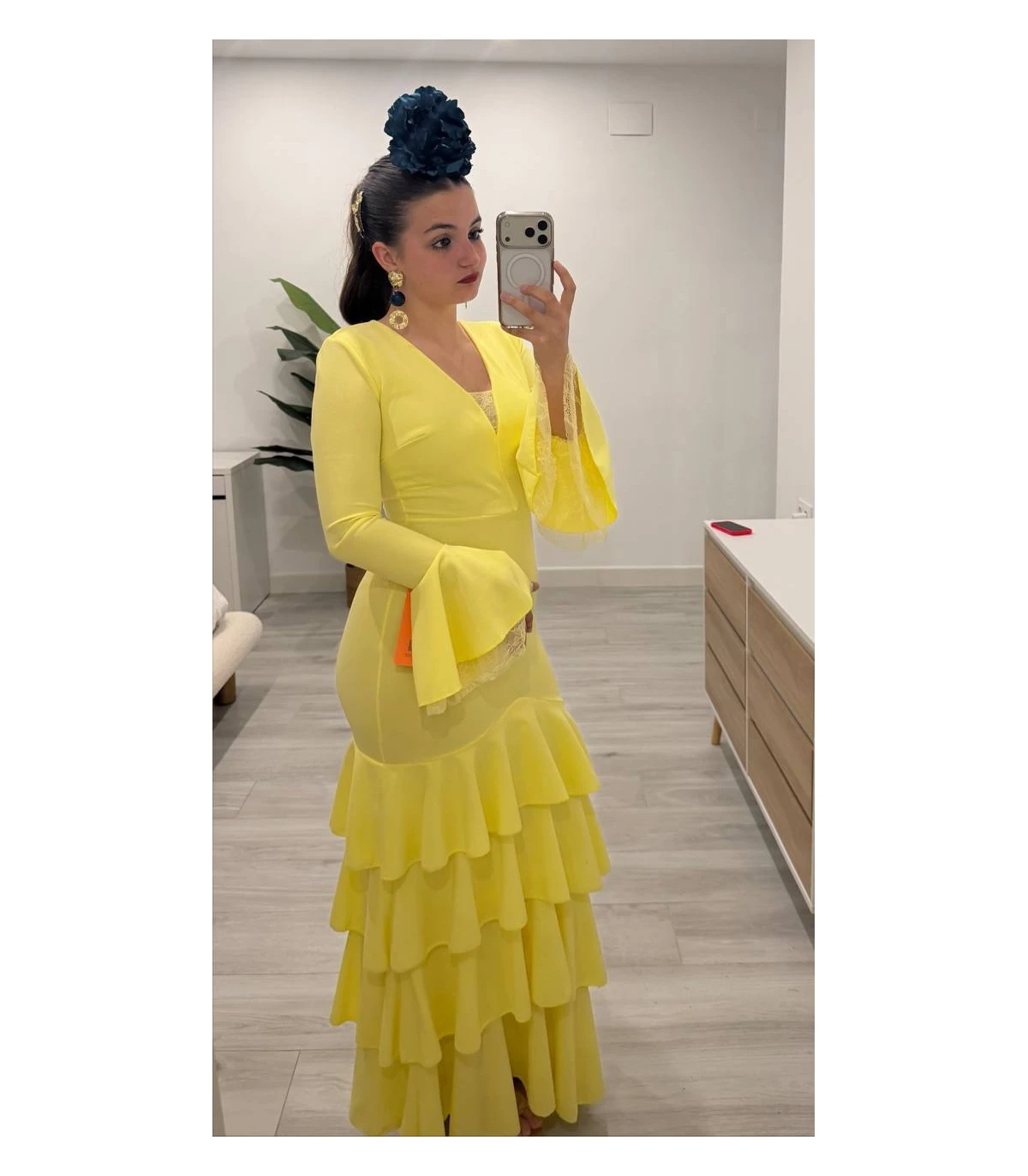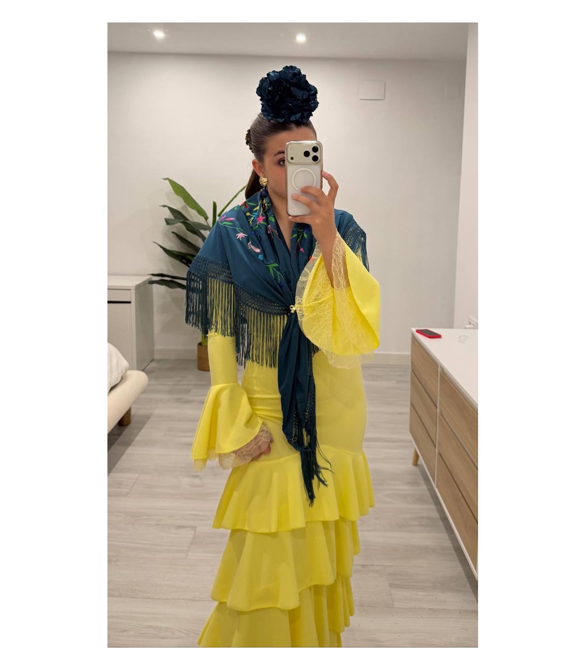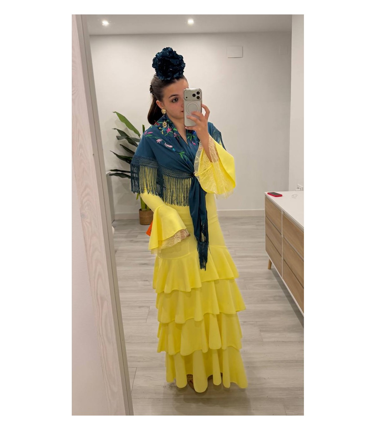 Vestido flamenca encajes amarillo