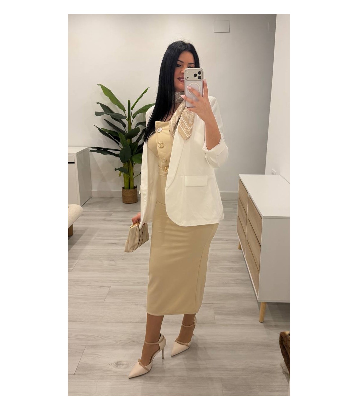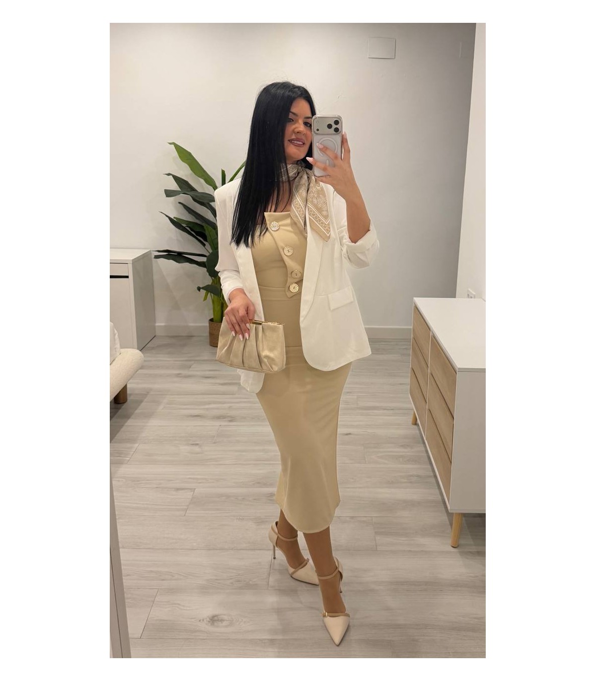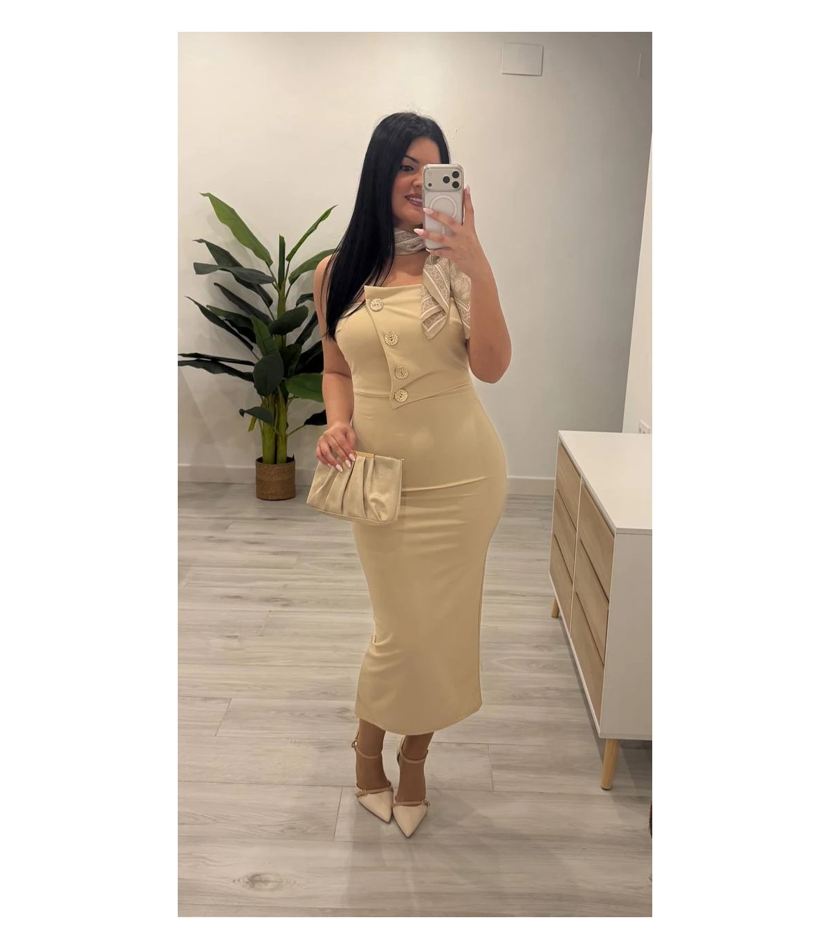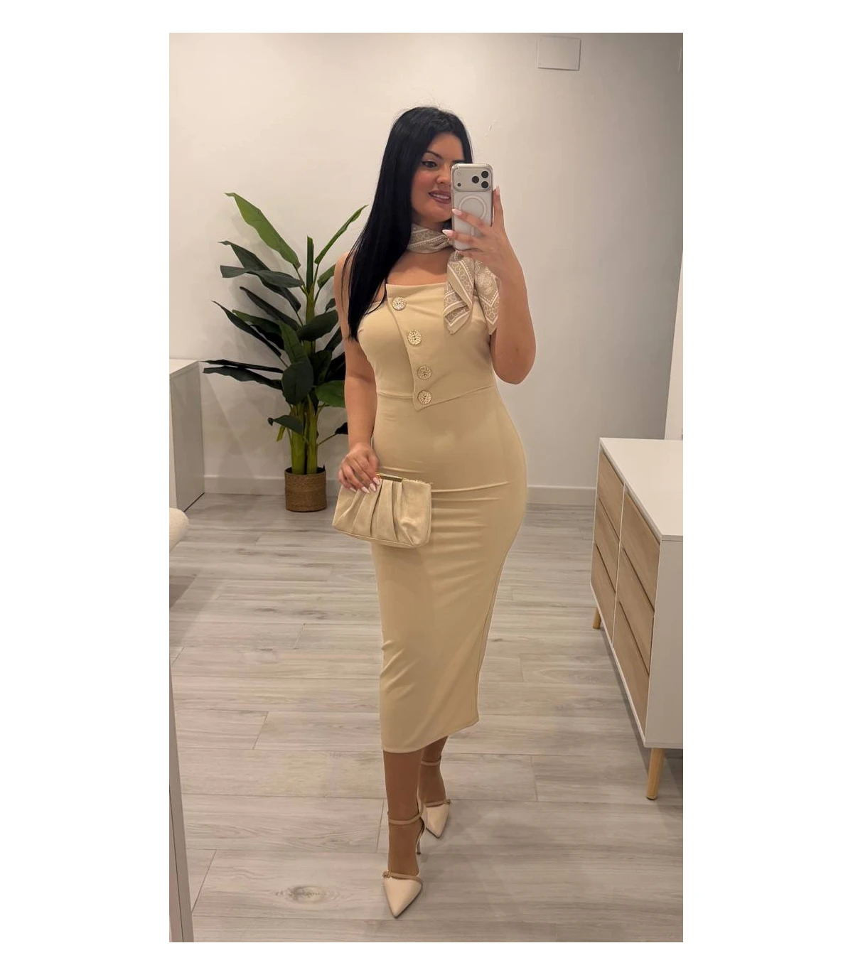 Vestido camel botones